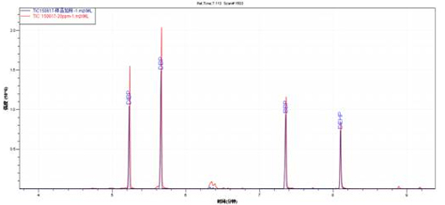 样件加标TIC图(黑色)与邻苯混标TIC图(紫色)