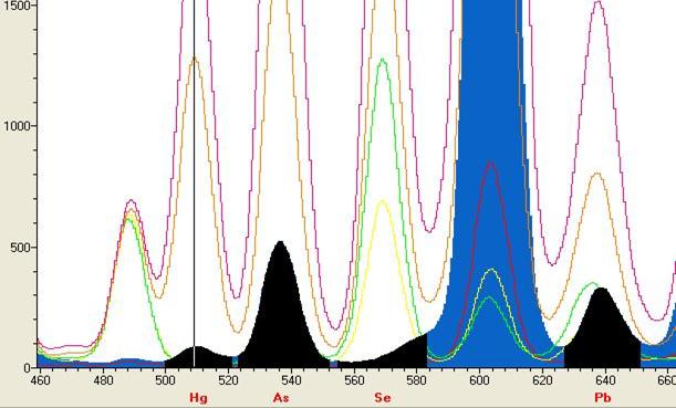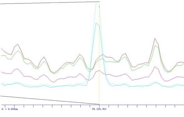 Pb的图谱(虚谱呈现相差含氧量的谱峰)
