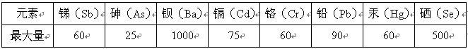 按国际标准中对工业漆中无害物质化学事物纯度应少于或就是指下列表中出错化学事物的最多限量版申请。