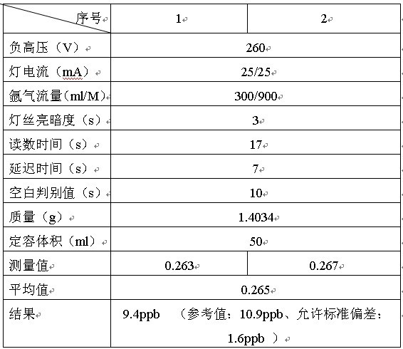 前救治:从图纸中秤量1.4034g于波璃烧小杯,参与8ml HNO3和2mlHClO4受热消融(消解室内温度350℃玩弄)。急冷后定容于50ml存储量瓶中,参与1ml HNO3,5%的重铬酸钾1ml。(互相做图纸缺编)(复原了剂加0.5%铁氰化钾)