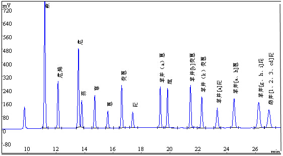 图1.16种多环芳烃规范化硫酸铜溶液色谱图