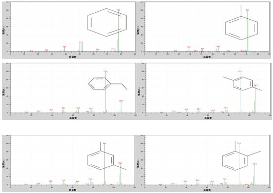 1.苯 2.甲苯 3. 乙苯 4. 对/间二甲苯 5. 邻二甲苯