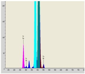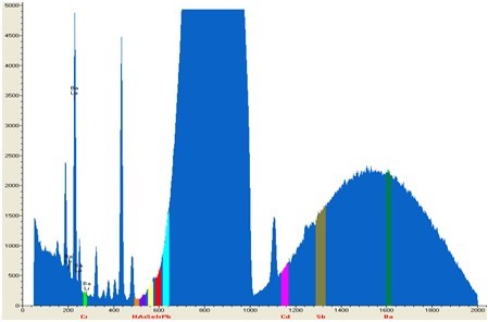 支配EDX 9000C议器对小汽车零部件有机玻璃仿品遏止检测,检测同时1秒,其检测谱图和统计数据如下图: